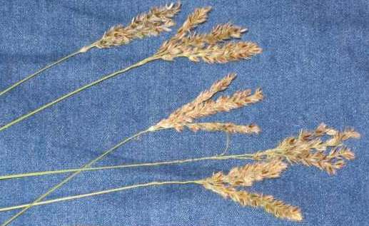 inflorescense, and the hairless spikelets, which give it a "dotted"