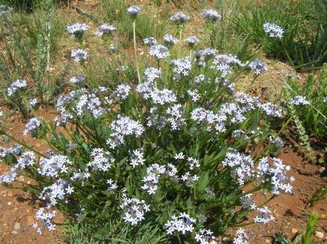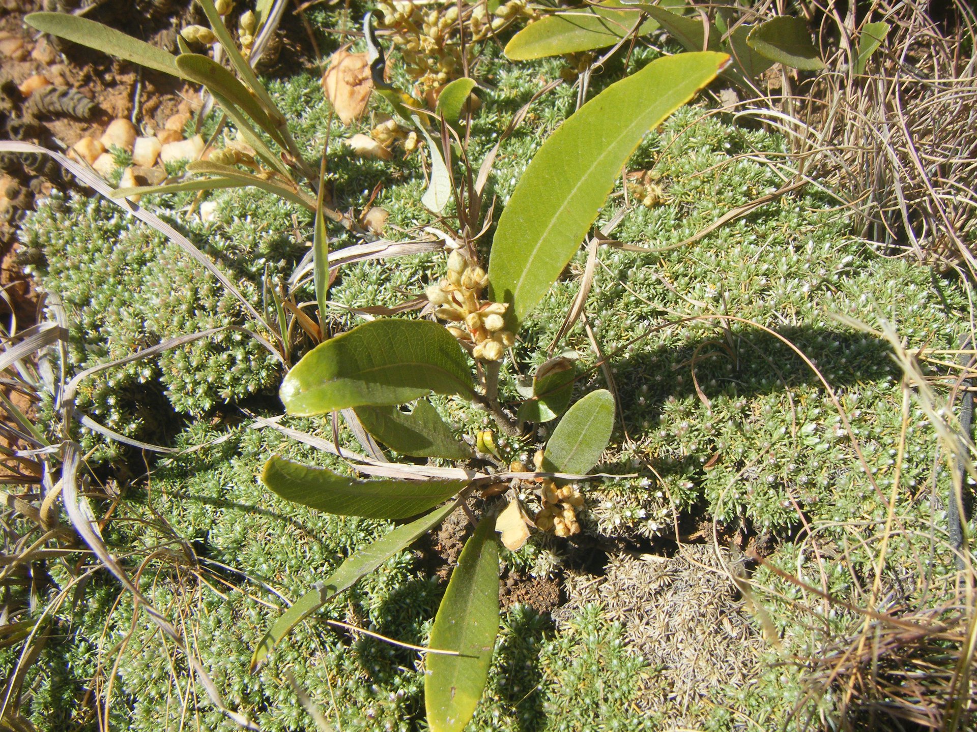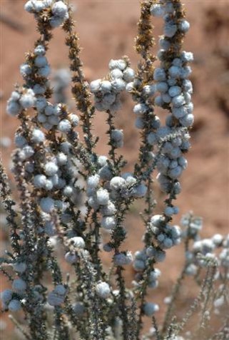 Bankrotbos is covered with white furry little galls. These are not flowers. The flowers are inconspicuous, teeny and pink-tipped. The profusion of tiny seeds produced are are golden brown and easily wind-dispersed. Bankrotbos (Seriphium plumosum) is a sign of degraded, overgrazed veld. It is a warning that the farmer will go bankrupt in due course as all animals shun grazing this invasive bush. Even though Melville Koppies is not grazed, except by termites, the occasional bankrotbos sometimes appears, perhaps the result of windblown seeds. The bos is immediately zapped by the conservation team. I was horrified to see the overgrazed, overstocked state of the veld on a game farm we occasionally visited. Bankrotbos ruled supreme. This farm was in stark contrast to the adjacent cattle farm which only had a few scattered bos bushes. The barbed wire perimeter fence seemed to be a magic barrier!