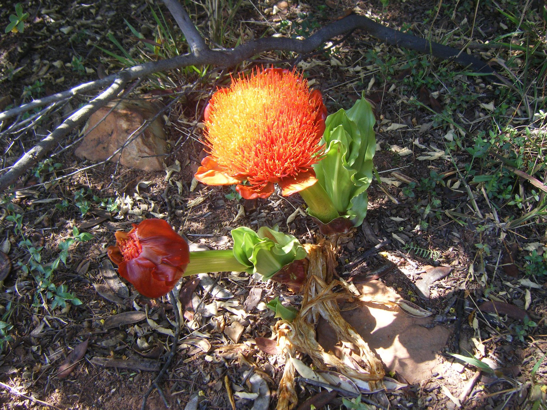 A close-up of the beautiful little 'post-box' red Indigofera flower. Photo by Maria Cabaco who spent many hours taking beautiful photos of Melville Koppies' treasures. When I moved to Jo'burg and much later started walking the Koppies and learning about its treasures, I recognised the very same flowers. But - and this raised a huge conundrum for me - how did these plants manage to be so showy in early spring when they hadn't received a drop of rain since the April rains? That began many searches to try and find out why. Common terms kept popping up: perennial, woody rootstock, rhizome, bulb, corm, tuber ... And there was my answer! These were not like Namaqualand daisies that start again from scratch each year relying on thousands of seeds to keep their brand going. These hardy perennials had found a way to deal with unpredictable rain. They'd manufactured Plan B to store food and water below the ground for the lean times. Some had extensive woody root structures, others had potato-like tubers and yet others relied on little onion-like bulbs to keep them growing. What was even better about Plan B was that plants could also survive fire. But that's another story ... Day 25: Guarding the hut Wendy Carstens