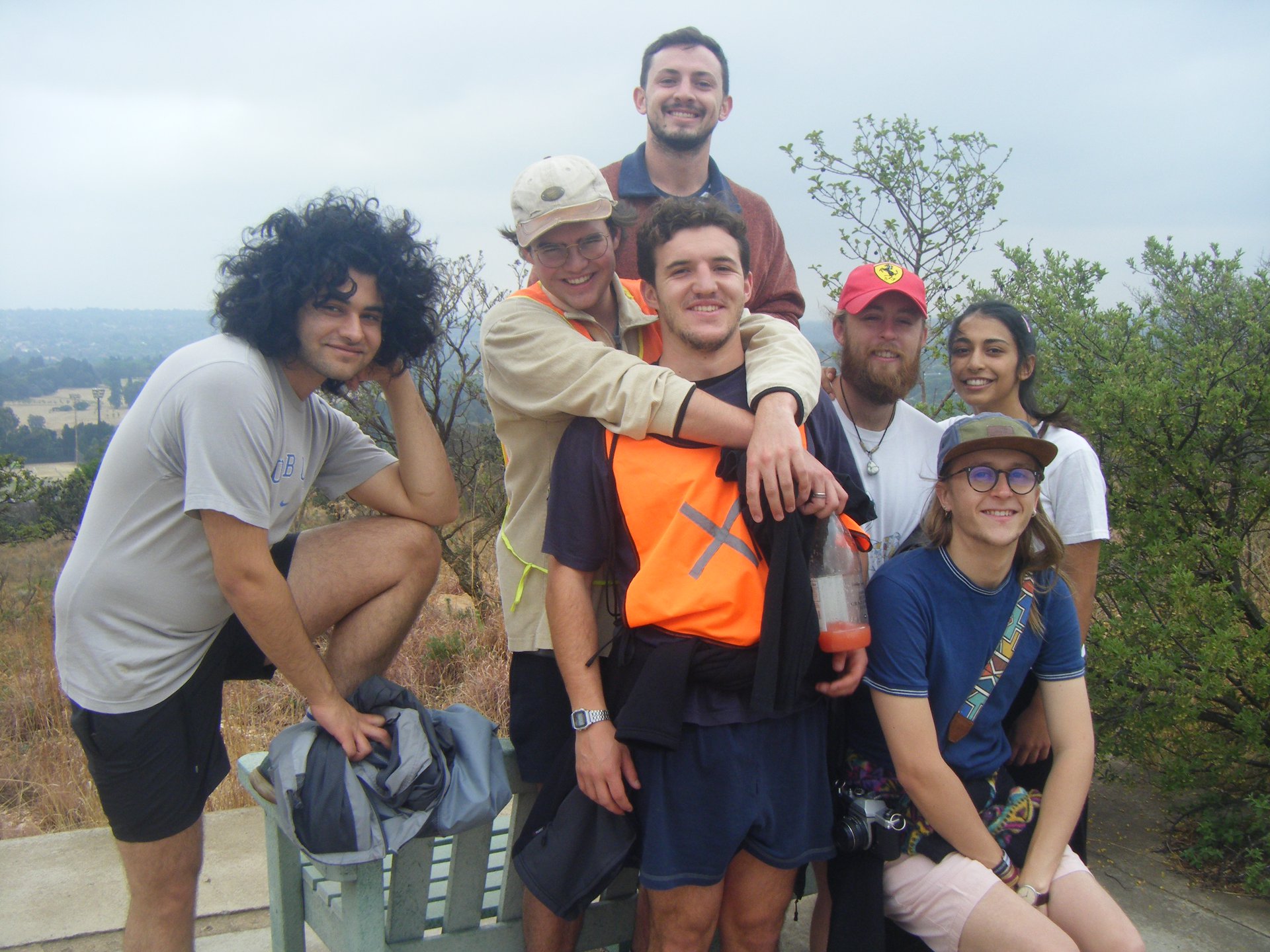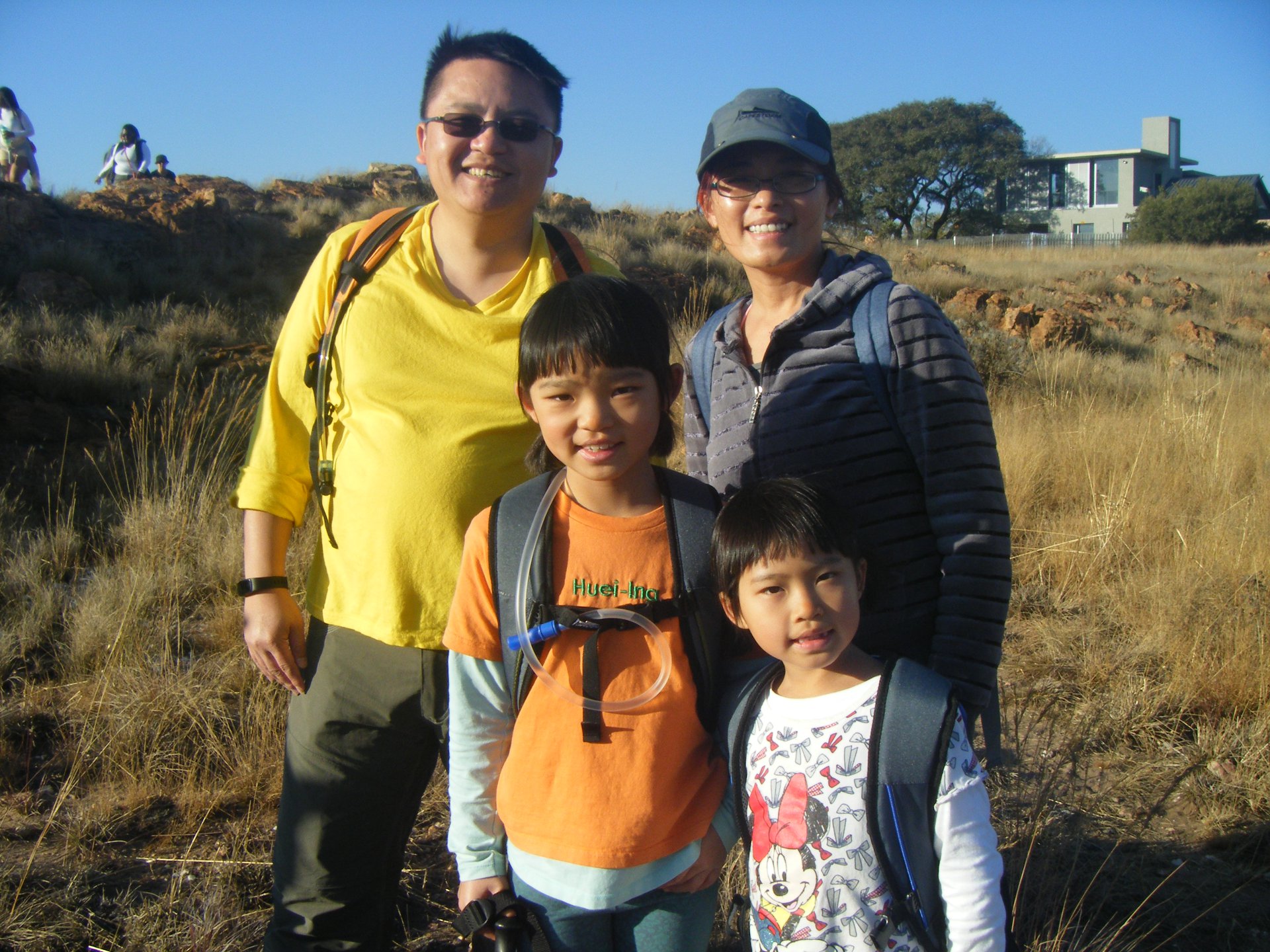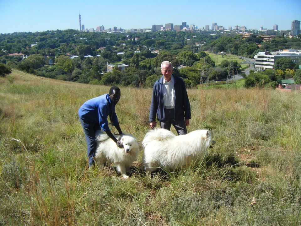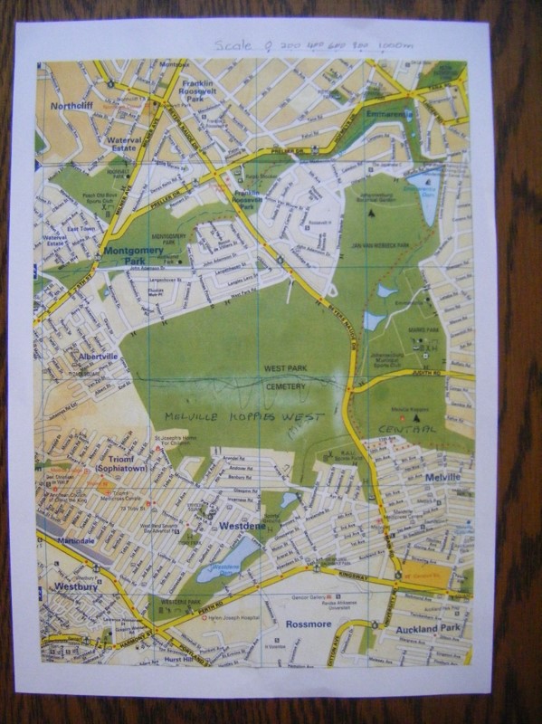 The late Richard Hall, (sans his customary blue overalls) and David Mpilo. These two rather crusty mavericks worked well together. David ended his stint at Melville Koppies in 2005 due to a long spell of ill health. He then went back to light duties at the Joburg Botanical Gardens. Richard (1920-2010) was also known as 'Mr Melville Koppies' because of his passionate dedication to the Koppies. David demolished the unstable remains of the hut. Then he salvaged and trundled the squared rocks in many wheelbarrow loads to make a stone path up to the Lecture Hut. ![]() The concrete base of the vandalised guard hut is a favourite stop on hikes for photos or as a snack stop. Grandsons (of Wendy Carstens) (in bibs) Declan and Gio assisting with one of the scheduled hikes. Outsourced guards were appointed to Melville Koppies from 2002. The security companies and their guards were changed frequently which was very unsettling. After many requests, they did get a new wooden guard hut conveniently placed next to the lecture Hut and smelting furnace. The new hut didn't look so good after it was struck by lightning during a massive thunderstorm. The guard who was in it at the time shot out in fright. 'So where did he shoot out to?' inquired my curious practical granddaughter. 2020 Update: The guards (two day and two night) are now insourced and have smart navy blue uniforms with the JCPZ logo. However, the once 'new' guard hut is not so smart anymore. As one guard said, 'Please tell City Parks that the guard hut is #@!&*%!' A new guard hut will hopefully be a JCPZ priority as winter is approaching. *JCP became JCPZ after the Zoo was added in about 2010. Day 26: Beyers Naude Drive Wendy Carstens