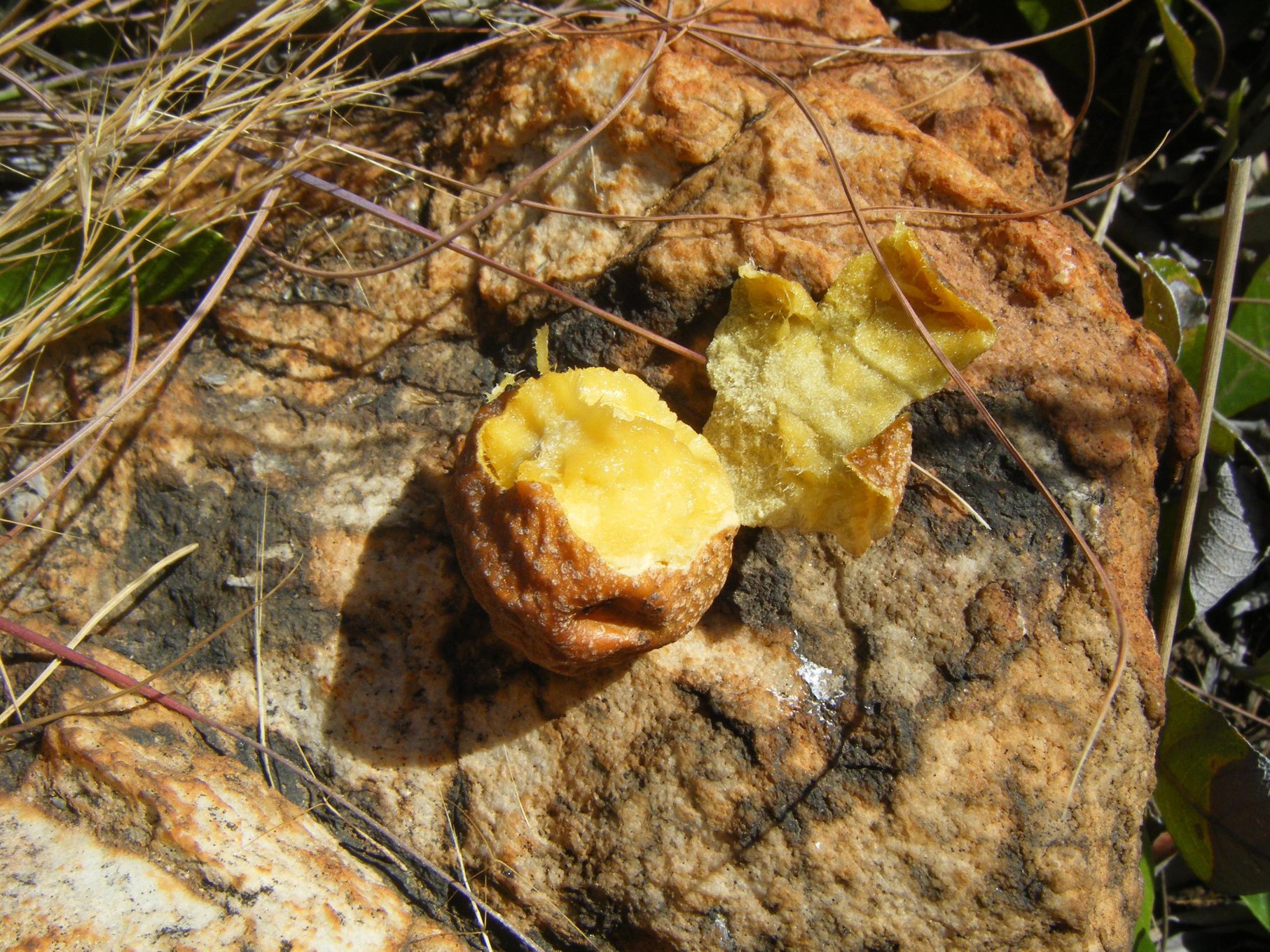 Fire dragon! The perimeter firebreak can take up to five hours to burn. The centre takes 15 minutes. Then, once the whole area has a burnt ring around it, the centre is set alight. It takes a while to really get going, but at a critical temperature the surrounding grass instantaneously ignites. This is when the roar in ones ears starts to make breathing difficult. The fire-devils leap high into the air and occasionally some jump over the break - requiring fast and scary calculating work from us to quench the escaped flames. Escaped flames should not be allowed to go wherever they want on the Koppies! Residents would get a little nervous, and so would we. Many of us have personal experiences with fire, and we know that we do not have mastery of this force - we are, in fact, at Mother Nature's mercy. Day 29: Fighting fire by going underground Jenny Grice If you come on a guided tour to the Koppies, you will reach the top after about two hours of walking and stopping to hear about interesting things along the way. By this time, some visitors are trying to catch their breath after a steep rock climb and the younger ones are out with their phones posing with the glorious view of the north of Jo'burg behind them. Near where people stand to take hundreds of selfie shots, in the warmer seasons, there is a carpet of shiny green leaves that sprawls across the ground. This particular plant is an underground tree, the sand apple (Parinari capensis). Yet another underground tree that grows on the Koppies is the Erythrina zeyheri or ploegbreker, as it is known, because of its huge root that can break a plough. It appears in spring and dies back at the end of summer only to appear again next spring. Plants like these are odd because they have sisters that are significant trees (above ground) - the underground sand apple's sister is the mobola plum, and the ploegbreker's sister is the magnificent coral tree (Erythrina lysistemon). Scientists think that these underground plants were initially tall trees like their sisters. In fact, they've done phylogenetic studies of their DNA and protein structures that show their similarities and that their divergences occurred in the last two million years. So what made these particular plants become dwarfs? Grasslands are relatively new in evolutionary time - only about 30 million years old. The particular type of grassland that we see on the Koppies emerged much later. It is one that receives a relatively high rainfall (at least 750mm a year) which enables the grass to grow thick and tall in the rainy season, and that has a dry season long enough to dry out the grass so that it can burn like tinder, and regrow again the next spring. So what do you do if you're a tree and every year you produce flowers and fruit/seeds only to have the grassland fires destroy your baby offspring? Well, like many faced with life-threatening situations, you become radical and go underground. And these plant radicals have a special name - geoxyles, i.e., an underground tree that never grows taller than one metre and that has its woody branches buried. Only its shoots, tips, leaves, flowers and fruit appear periodically. So, when you come on a guided tour, make sure you ask us to show you the 'paranoid' tree (scared of fire, frost, drought and grazing), one of the wow factors on the Koppies. Day 30: Where does it start? Wendy Carstens