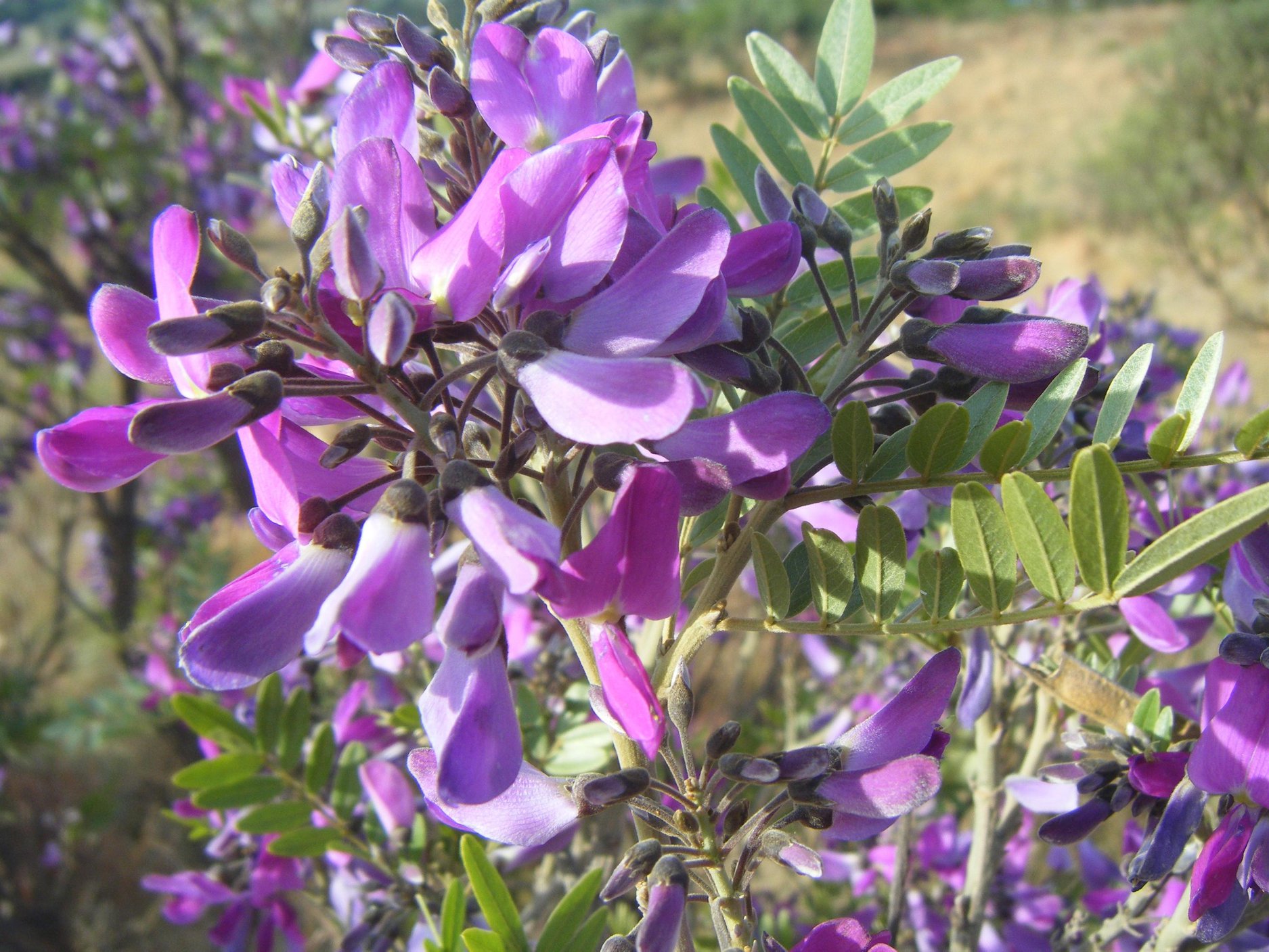 A lovely Pentanisia angustifolia bush. Some bushes have deeper blue flowers than others. We may get a real bonanza of spring flowers next spring because of the recent rains. Growing up near Durban on the edge of a deep gorge which had pockets of natural grassland, I always associated the wild flowers that popped up every spring in the grassland with rain. (And in fact, there are no months in Durban when it doesn't rain - it just rains a little bit less in June and July.) ![]() Indigofera meladenia - I bear blue dye. This member of the legume family is competing well with the alien Kikuyu grass opposite the PUMA garage on MK East. I could never remember the flowers' names, despite our mother's best attempts to teach us. But every year in about August, they would be back, the deep blue of what I now know is called Pentanisia angustifolia, the sun-yellows of the Hypoxis and the post-box red of the Indigofera.