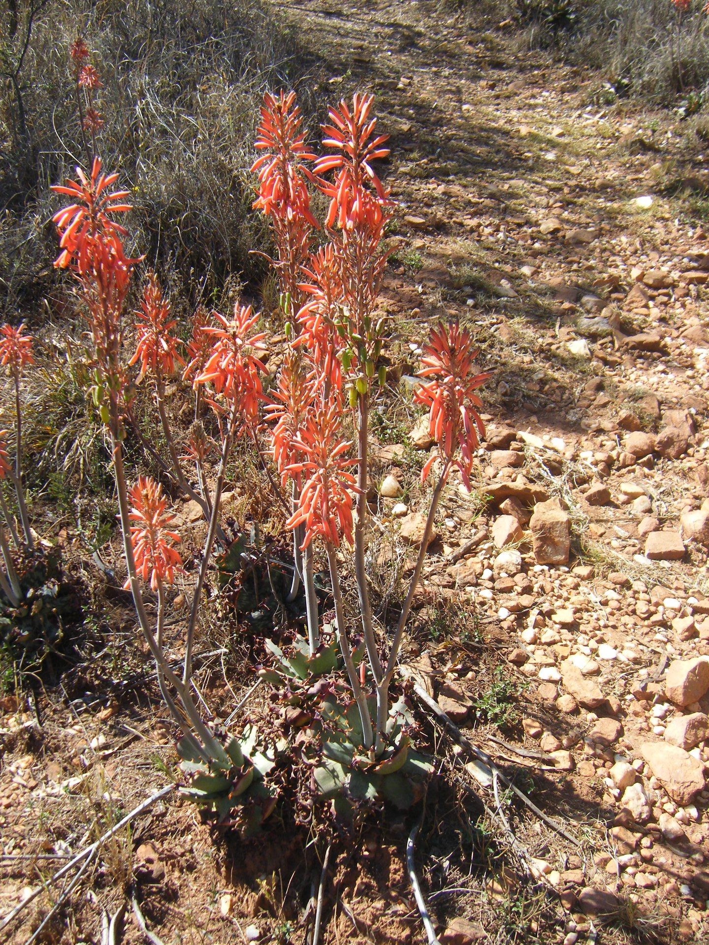 A medicine bag filled with healing herbs. Wild als (Artemisia afra) was probably one of the known herbs. The early Bantu-speaking farmers who moved into Melville Koppies from about 1300CE, were not minimalists. They arrived with cattle and baggage for their large family groups and a settled agricultural and pastoral way of life. They brought their iron-making skills with them, using and reducing the bounty of the environment to make iron tools, e.g. hoe heads, chisels, spears and adzes. The charcoal from two trees was needed to feed the hungry smelting furnace for just one firing. (Melville Koppies is a Joburg Heritage site because of the original smelting furnace found here.) Land was cleared for crops and dug over with iron-tipped hoes - by the women who started the pattern of multi-tasking. ![]() An ostrich egg could provide the equivalent of twelve hen's eggs. The contents would be blown out of a hole so the intact shell could still be used for carrying water with the hole plugged with grass. If the shell broke, pieces would be roughly shaped, a hole drilled through the middle and the shapes then threaded on a string. The threaded shapes would then be rubbed in a grooved stone to be nicely rounded for a necklace. The women made pottery, grass woven baskets and mats, sorghum beer, in addition to looking after children, planting and harvesting crops, grinding the sorghum, etc. etc. Men occasionally hunted and boys looked after the valuable cattle. The iron-making skills were gradually lost as products of the European Industrial Revolution made their way to South Africa. A woman would prefer a husband who could provide a plough to be pulled by an ox than one who presented her with a simple hoe. Modern man's toolkit? Just try naming tools from A-Z in your home, never mind the heavy-duty tools of industrialised countries. Early stone-age man made his own tools. Early farmers made tools for themselves and bartered tools for crops in a limited economy. Modern man buys all his tools using an acceptable currency, from bartering with cowrie shells, cigarettes, to using hard cash, cheques to electronic monetary transfers. Day 36: Those that roam Tamarin Scheidegger I do enjoy the wild, the wilder the better. As a child, I spent hours imagining a hermitic life on the Sand River near St Francis Bay. It was desolate, sand dunes that rolled one after the other as far as the eye could see. Little oases between the dunes seeped out of the dry sand and brought refreshment. The San middens along its stretch hold shells from a time when the San ate foot-long mussels and dinner-plate sized Alikreukels. They used ostrich shells to decorate themselves and hunted on the coastal plains side-by-side with the Hippos that grazed. On my first guided tour of the Melville Koppies a few years ago, I learnt that clans of these same people had roamed the ridges of the Witwatersrand. Their worked rock shards could be found in the silt deposits between the quartzite ridges. Imagine a group of hunters, sitting around on their haunches, lacing their arrowheads with poison gum. Perhaps they used the sap from the Bushman's poison tree (Acokanthera oppositifolia), or perhaps instead they felt like fish for supper and collected the bark from the Cork Bush (Mundulea sericea). This has an ingredient called Rotonone that is said to poison the fish and even crocodiles, which then float to the surface where they can easily be collected! I wonder if they knew of the effects of accumulated cyanide. Would the Wild peach (Kiggelaria africana) also be on their lethal potions list? And what would the treatment for an upset stomach be? There was no trustworthy May's chemist up the road during their time here on Melville Koppies. Traditional knowledge was kept alive as it was passed down from generation to generation. Much of it has been lost, because these people no longer live in this ecosystem - pushed out by the Bantu-speaking early farmers, who in turn, were ousted by the settlers. Their knowledge was integral to their existence. ![]() The Cork bush is an incredibly tough, flexible tree. Its corky bark is a protection against veld fires. The bark also contains rotonone, which de-oxygenates water so fish pop to the surface. The women made pottery, grass woven baskets and mats, sorghum beer, in addition to looking after children, planting and harvesting crops, grinding the sorghum, etc. etc. Men occasionally hunted and boys looked after the valuable cattle. My reference collection of bedside reading is now towering and teetering, as I try to gather as much knowledge as I can about the Highveld ecosystem. I do wonder aloud, "How did they do it without books?" This time of Covid lockdown has taught me that information can be owned by an individual; but knowledge belongs to a community. If something is really important then it will find a way to be distributed in our community. Day 37: The regenerative power of fire Jenny Grice Anyone who's seen a grass fire will be amazed that any plant can survive it. But grass thrives as the old grass is scorched to ash and new shoots delight in the light and air. So too do some plants. In fact many of them relish a fire and absorb the nutrients from the ash to spark new life into them. ![]() There are over 50 different species of aloes. Sun birds and bees love them. They do like well drained soil and thrive on the Koppies. There are the underground trees which have very extensive and old root systems. And there are others that have less elaborate woody rootstocks, tubers like potatoes or the Crinum graminicola, which has a giant bulb that can grow to the size of a very large grapefruit. These different below-ground root structures all protect them from fire and from lean times.